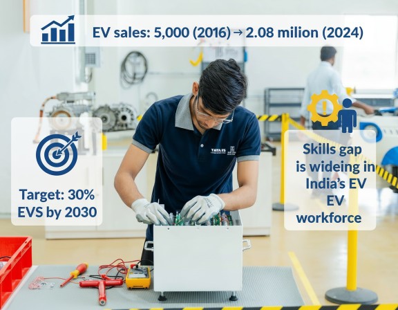 India’s electric vehicle landscape is experiencing remarkable growth, with annual sales rising from 50,000 units in 2016 to 2.08 million units in 2024. To meet the ambitious target of 30% EV adoption by 2030, the country faces a critical challenge: a widening skills gap in the EV workforce.