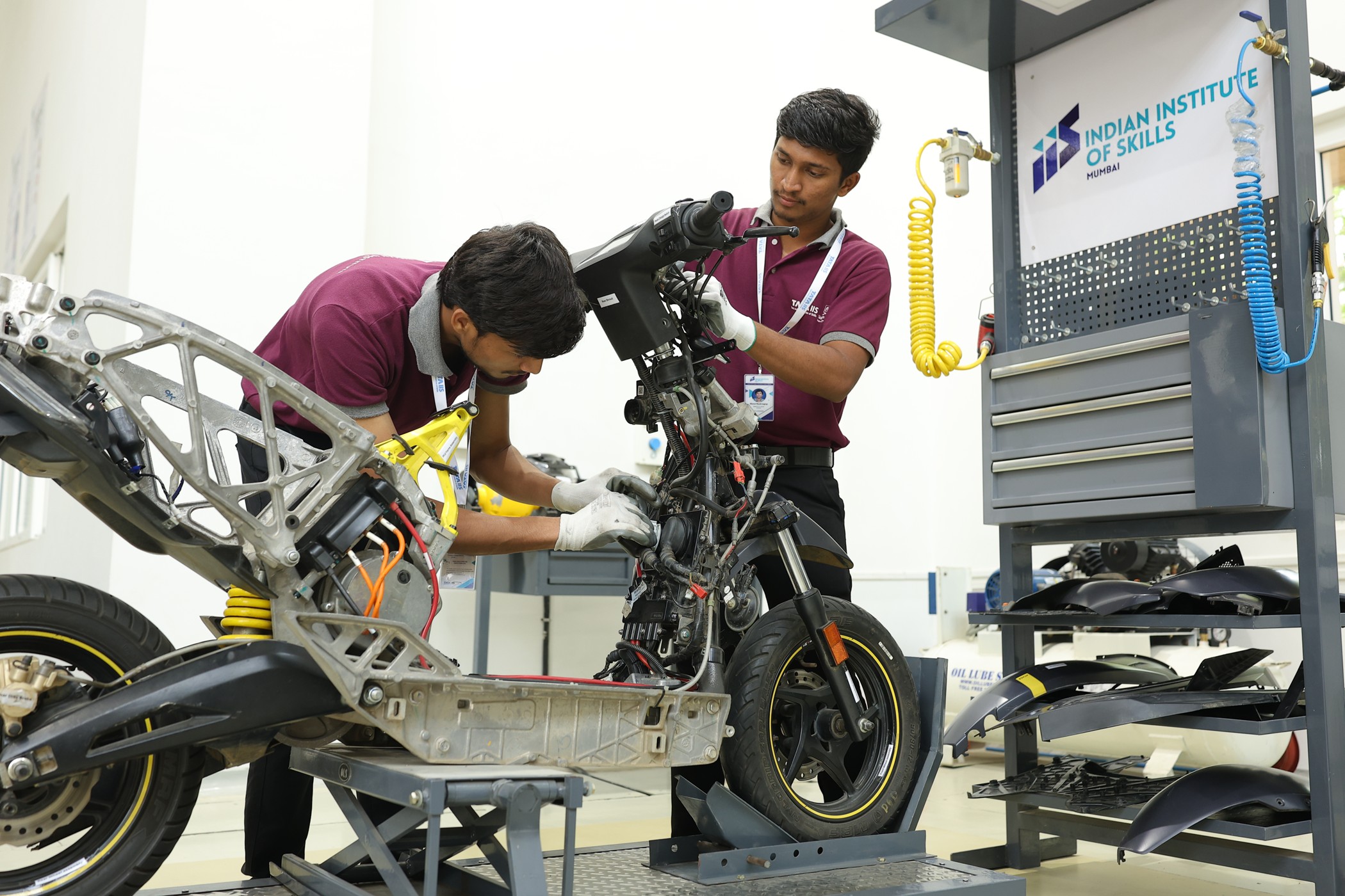 IIS Mumbai trainees working on a service bay of EV 2-wheeler Vehicle at Mumbai Campus