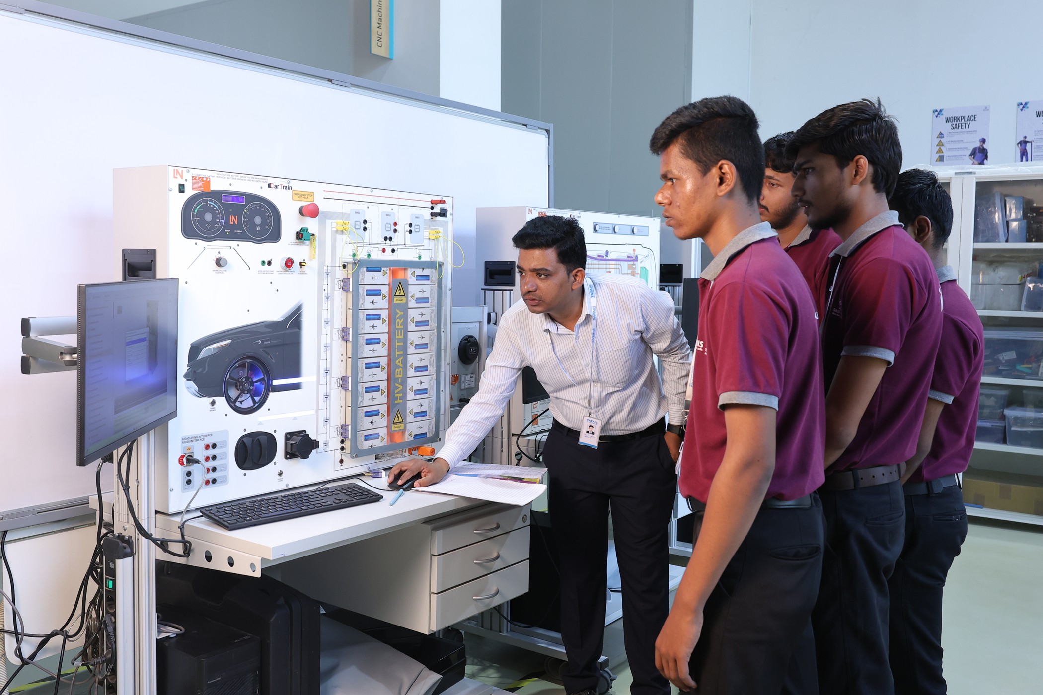 Tata IIS follows a practical learning model where 70% of the training is hands-on, using industry-standard equipment from partners like Ather, Festo, and Lucas-Nuelle. This approach prepares students for real-world challenges in the EV industry.